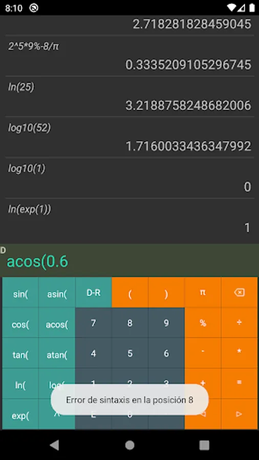 Scientific Calculator is a scientific calculator that solves traditional addition, subtraction, product, division, and percent operations such as operations with trigonometric, logarithmic, and exponential functions.