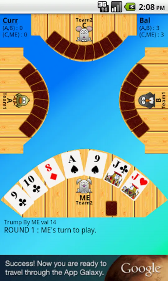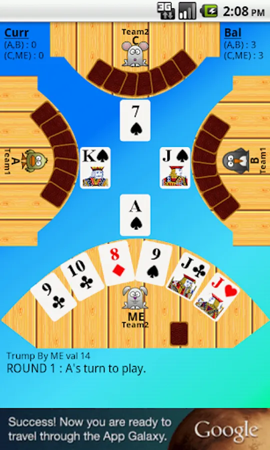 1) 28 Card Game consists of 4 players (A, B, C and ME) or 6 Players based on selection.
