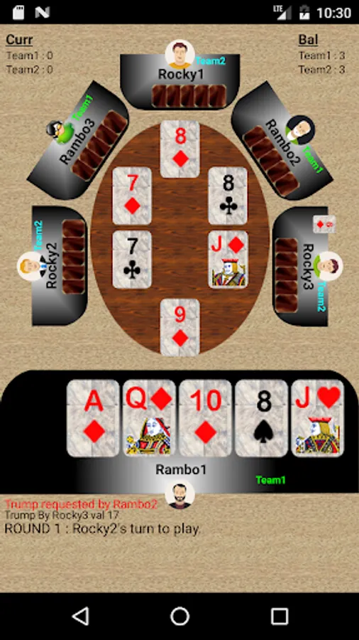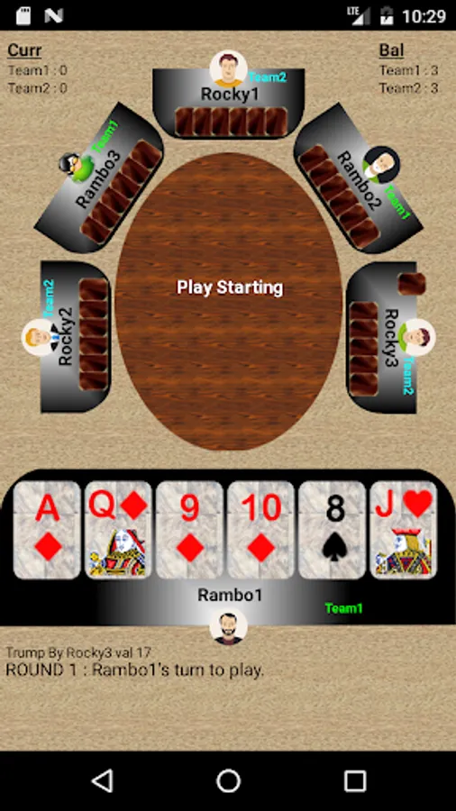 2)To play trump click on the trump card. Then drag respective card. Opening trump is based on 28 rules.