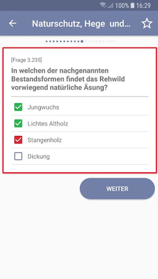 With this app you prepare yourself perfectly for the hunting license in Lower Saxony! Filled with the original exam questions (as of October 2018 / February 2019), you have the opportunity to practice the topics individually or leave the app, with its intelligent learning system, to pick the questions that are hardest for you!