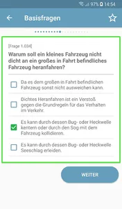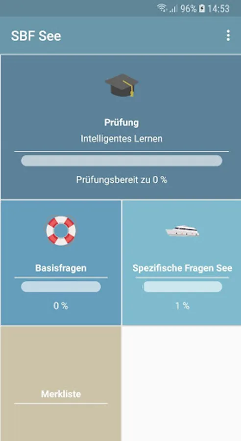 With this app (full version) you prepare yourself perfectly for the Sportbootführerschein See (SBF Lake)! Filled with the original exam questions (as of 01.06.2017, source: https://www.elwis.de), you have the opportunity to practice the topics individually or leave the app, with its intelligent learning system, to pick the questions that you want you fall the hardest!