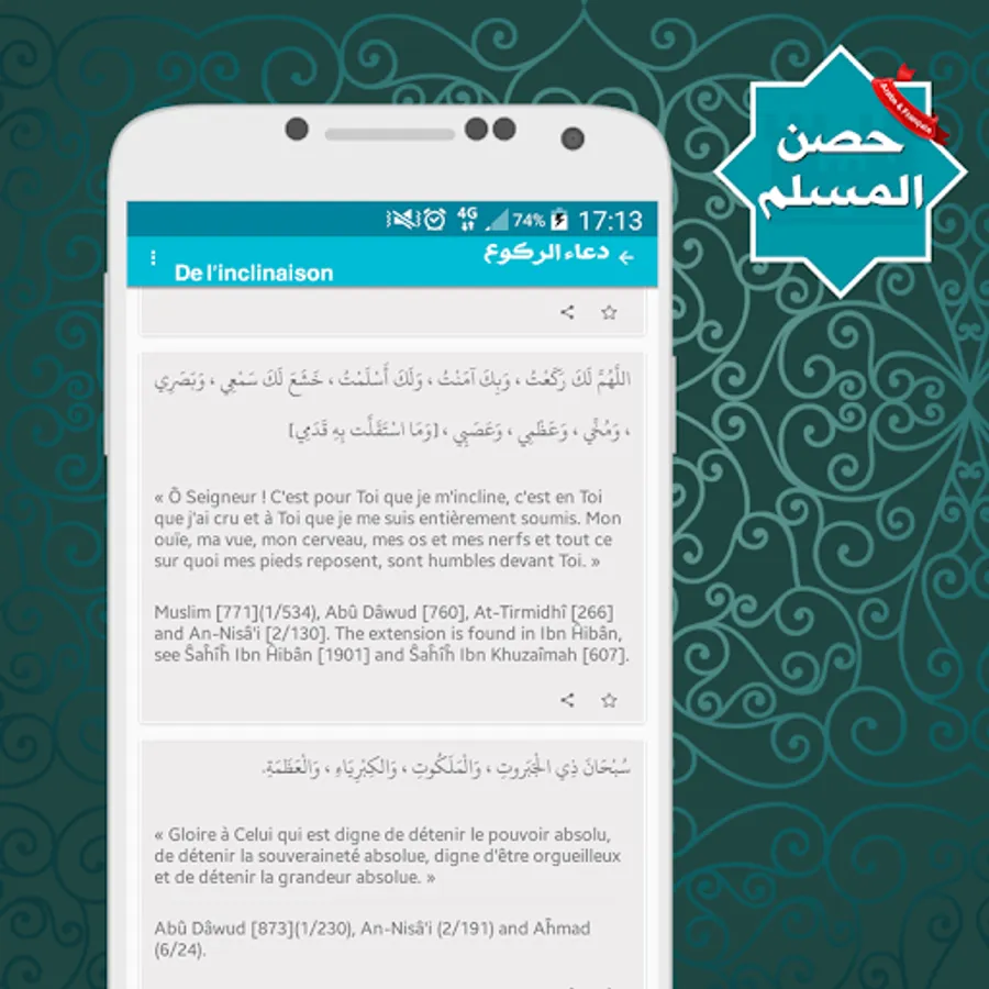 Thanks to Hisnul Muslim in French you become aware of religious practice, and it reinforces your learning Islam simpler invocations from morning to evening available in Arabic and French.