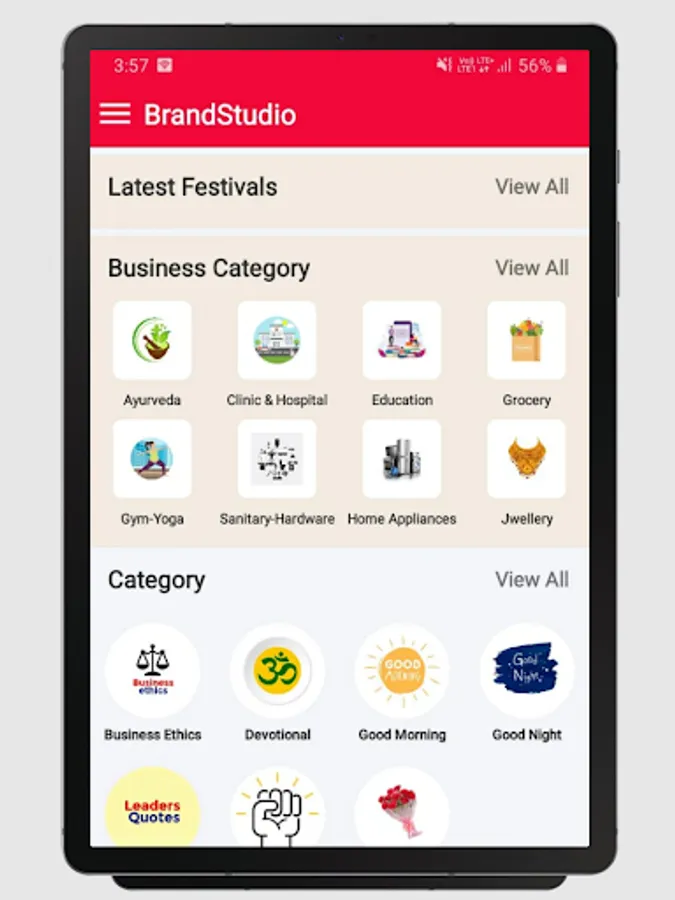 Brand Studio App Provide business promotional Multi-Language Post Content in English, Hindi, Marathi. We update daily Festivals, Trending Moments, Business Content, Offers Templates, Daily Post Like, Motivational, Business ethics, Leader Quotes, Good Morning, Good Night, Suvichar, Sport, Devotional, Rest in Peace, and Wishes Post + more daily post we're providing.