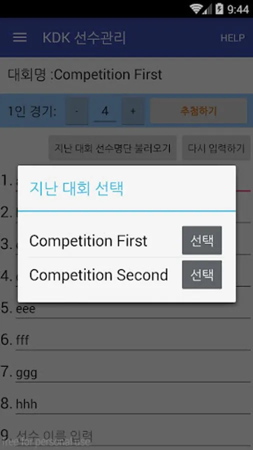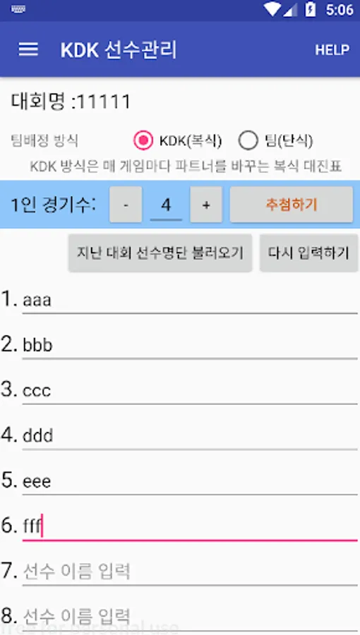 4. convenient player input function (support batch input function using the import of the players of the past tournament)