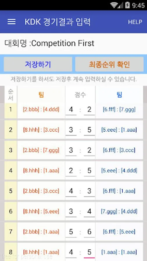 - It can be automatically generated manage the game against table of various sports doubles in KDK/Random way.