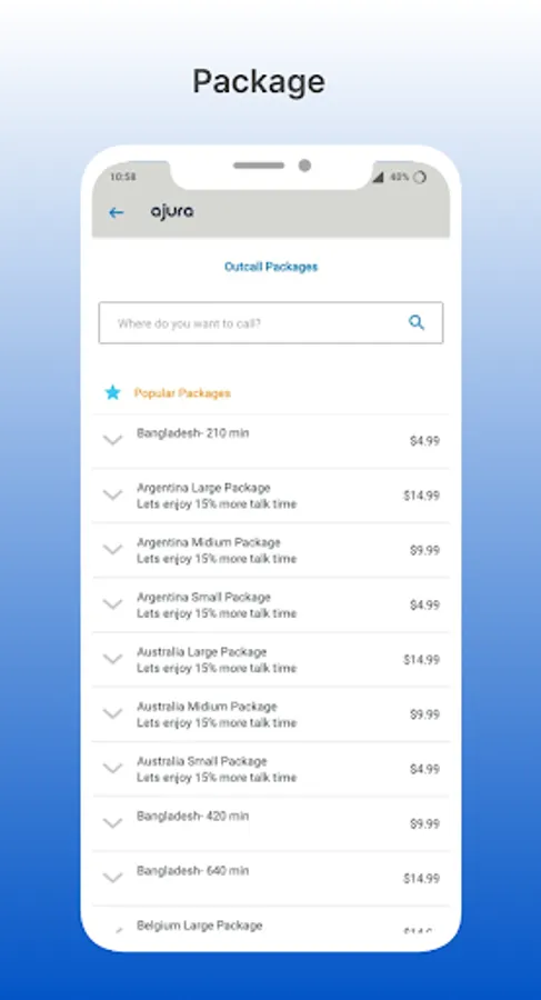 Ajura, a cheap roaming app, currently supports 54+ countries including the US, Canada UK, Singapore, Hong Kong and more. Cost effective prepaid global roaming packages for all travellers when abroad. Make cheap international calls while keeping your own phone number.