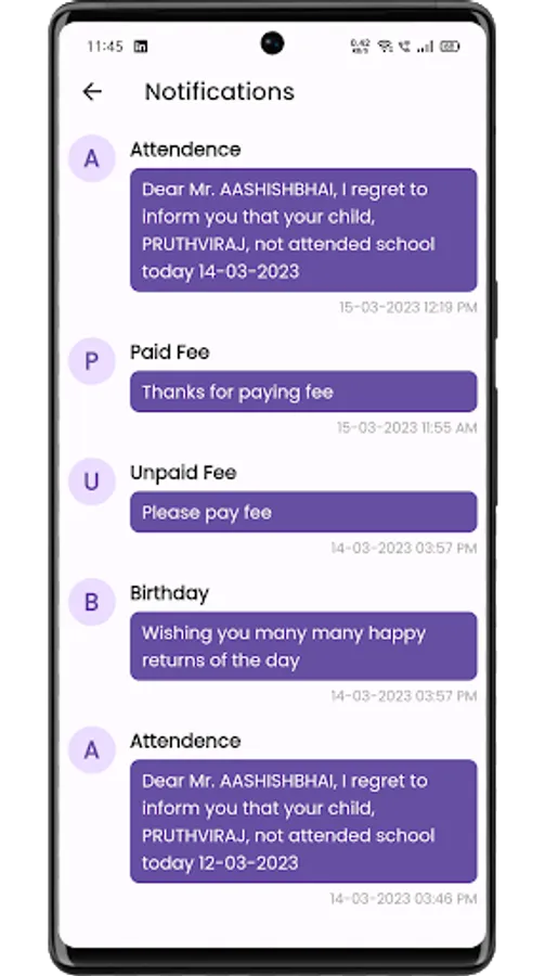 Parent visualize student progress. Teachers assign homework, take attendance, add exam marks, access annual calendar, Admin have access to dashboard where all the details of your organization.