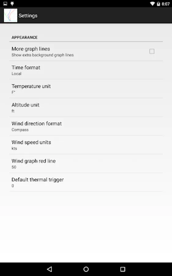 Configurable units and graph lines