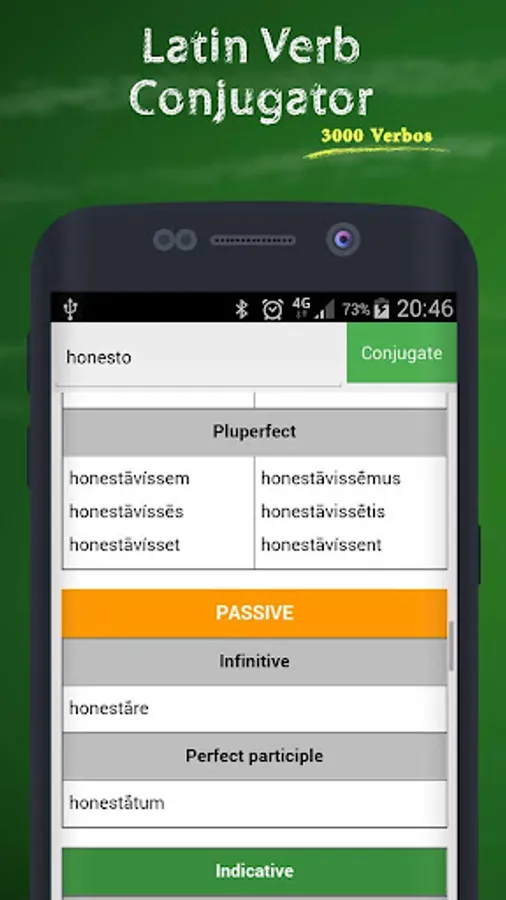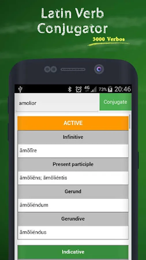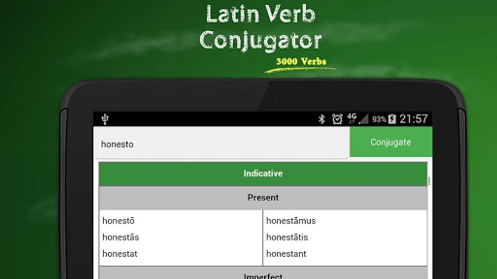 The use is very simple, Conjugate Latin quickly and easily with this verb conjugation app.