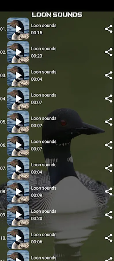 "Loon sounds application contains different kinds of Loon sounds.
