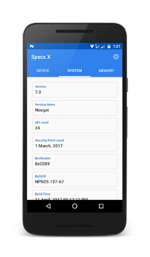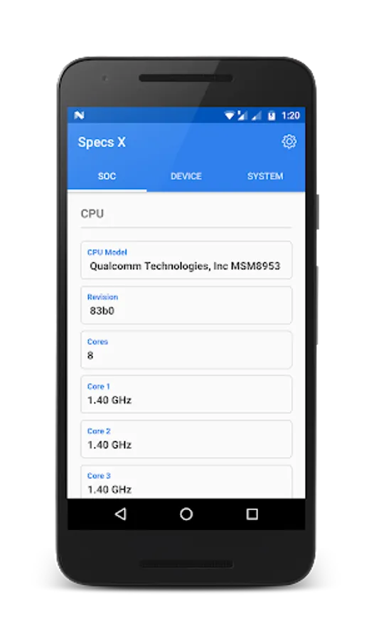 Specs X is a free application that shows your device specification and other device informations in an efficient and reliable way. This app shows device info like: