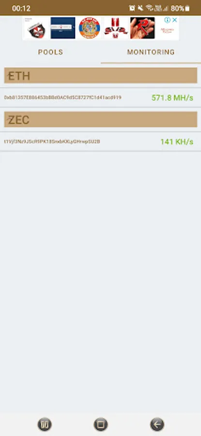Flypool Monitor is application for checking Ethereum, Ravencoin, Zcash, Ergo, Beam.