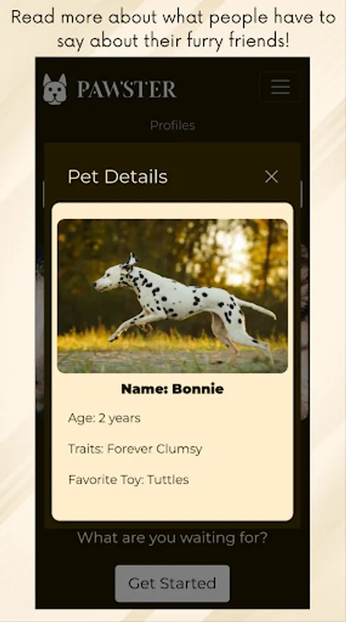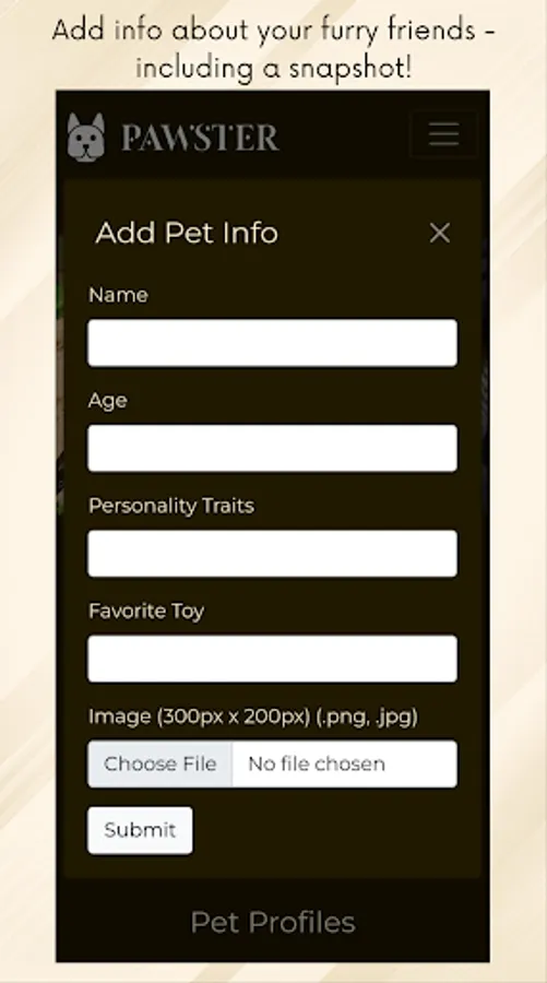 A pet lovers' community where you can showcase your furry friends and their unique personalities. Our app allows you to submit your pet's name, age, and favorite activity, giving them the spotlight they deserve. Whether you have a playful pup or a lazy feline, we want to see them all! Join us in celebrating the love and joy that our pets bring into our lives.🐾❤️