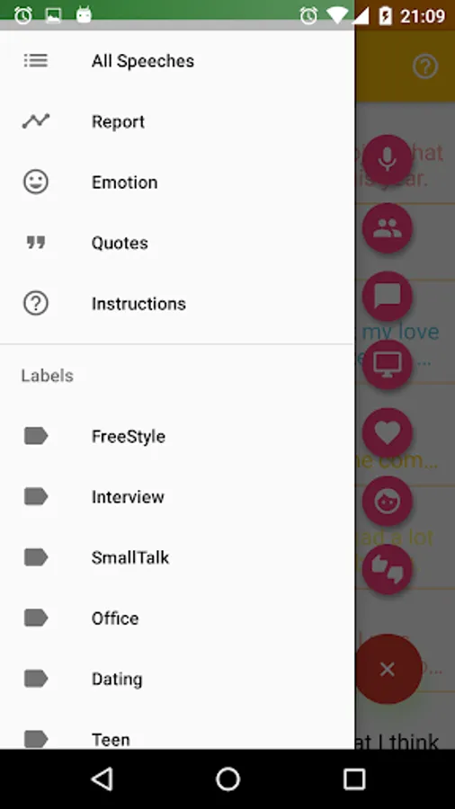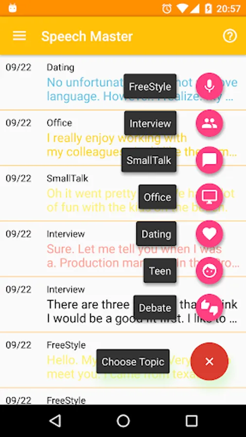 You can choose to talk in free style, or pick topics for scenarios such as Interview, Debate, Dating, Office, Teen, and more!