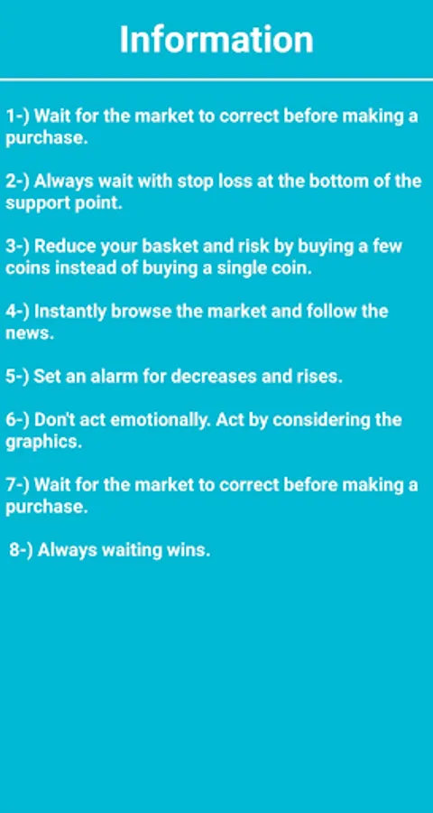 Our application also includes free and long-term Crypto coin tips, as well as coins with short-term potential to rise. On the way we set off with a different design and perspective, our goal is always to win. Our tips are renewed every week as a result of the formations and analyzes formed in sub-coins.