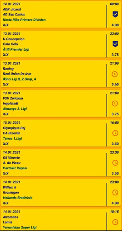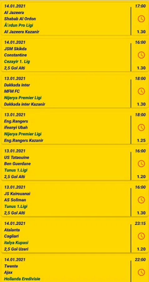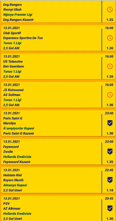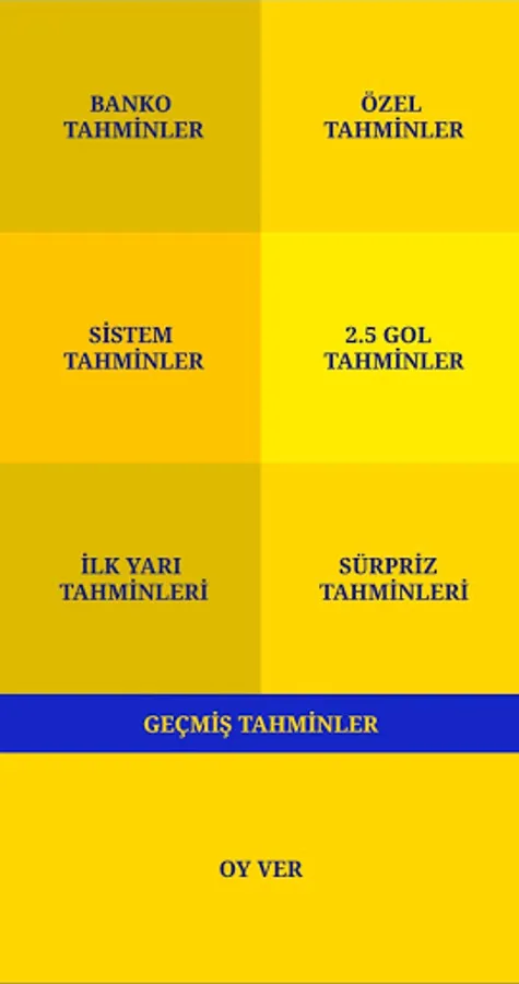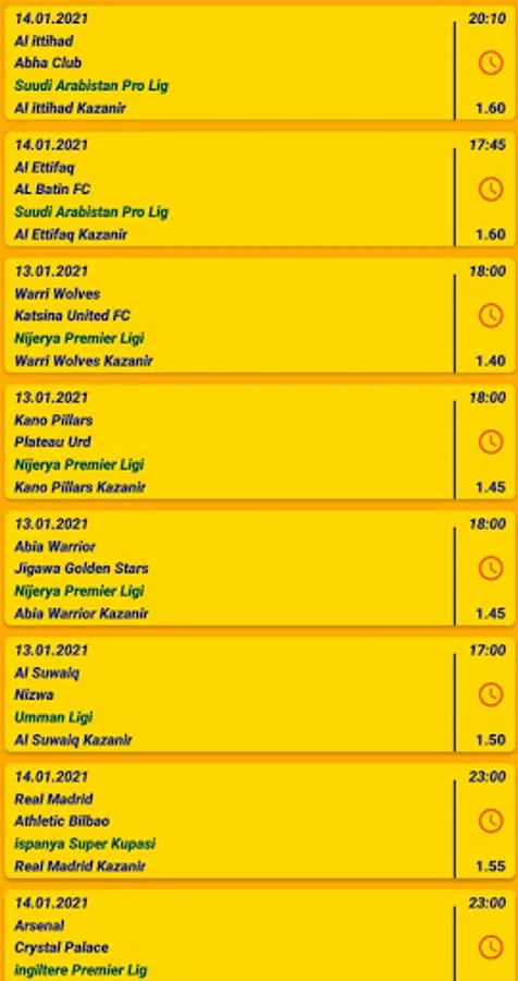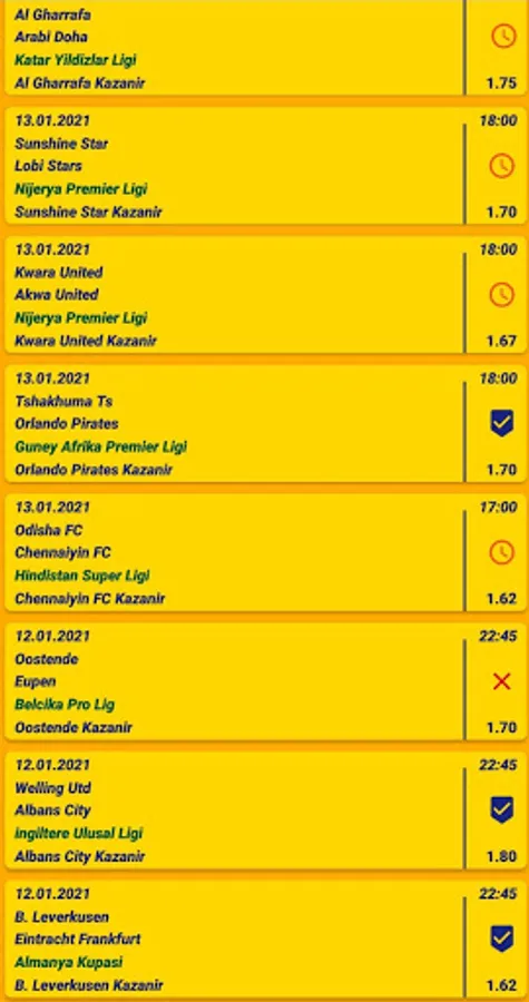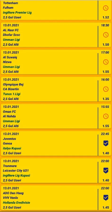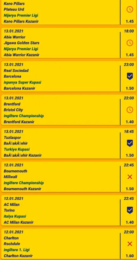 Our betting tips application is completely free. There are 6 different categories in it. In addition to the guaranteed predictions, which are described as close to 100%, there are also first half and end-of-match predictions that we can consider as a surprise.