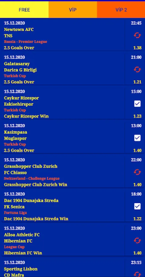 Our application has 3 different betting tips. The first of these is betting tips that are completely free. About 10 betting tips are given regularly every day.