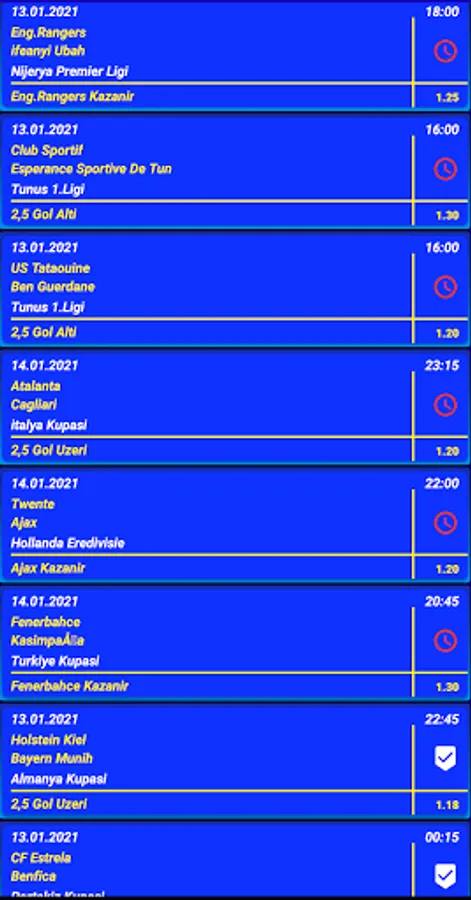 Our application, which includes 6 categories of football predictions, is completely free. You can use all parts free of charge without any charge. There are special and surprise predictions as well as the bank or guaranteed bet predictions that many football fans are following and looking for.