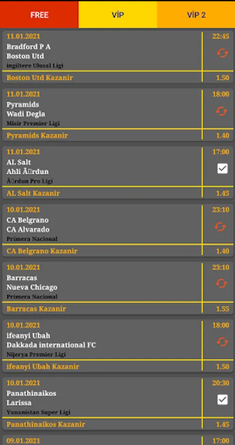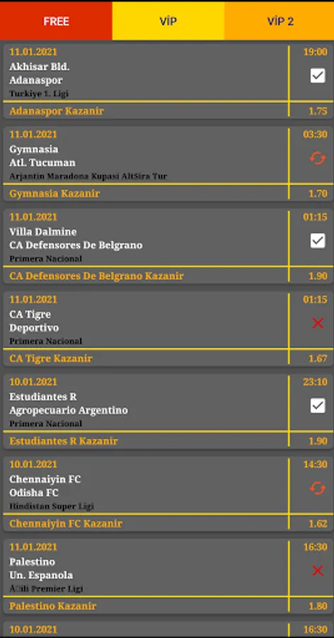 Our other two categories are Vip sections. We have two different VIP sections offered by different editors. There are predictions with a higher rate than free betting predictions in both areas.