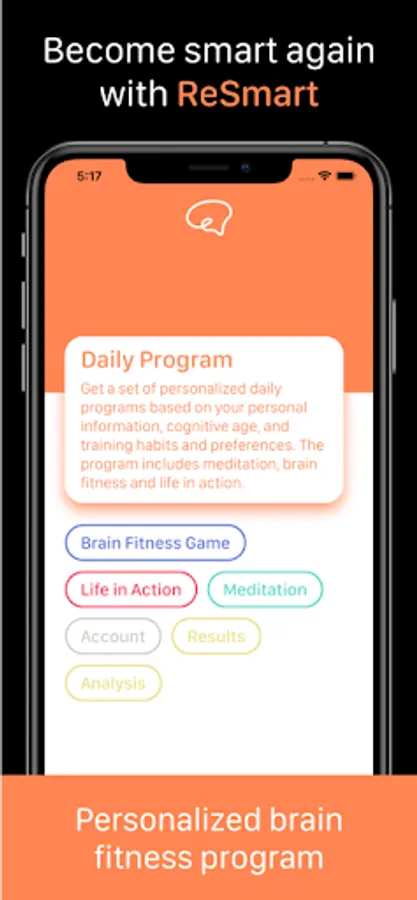 ReSmart provides Artificial Intelligence life-coaching for people of all ages through fun activities, which include brain fitness games, meditation sessions, and daily activity recommendations, that are designed to improve the five main cognitive skills: attention, linguistics, memory, thinking and visuospatial ability.