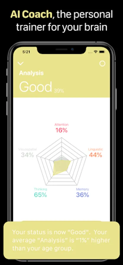 - AI Coach, the personal trainer for your brain, helps you track your progress and improve cognitive skills.