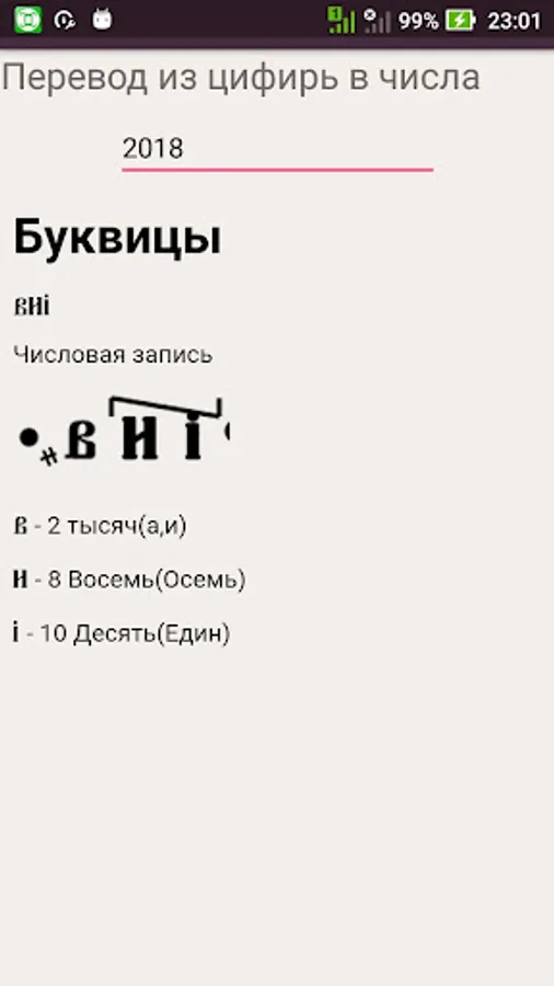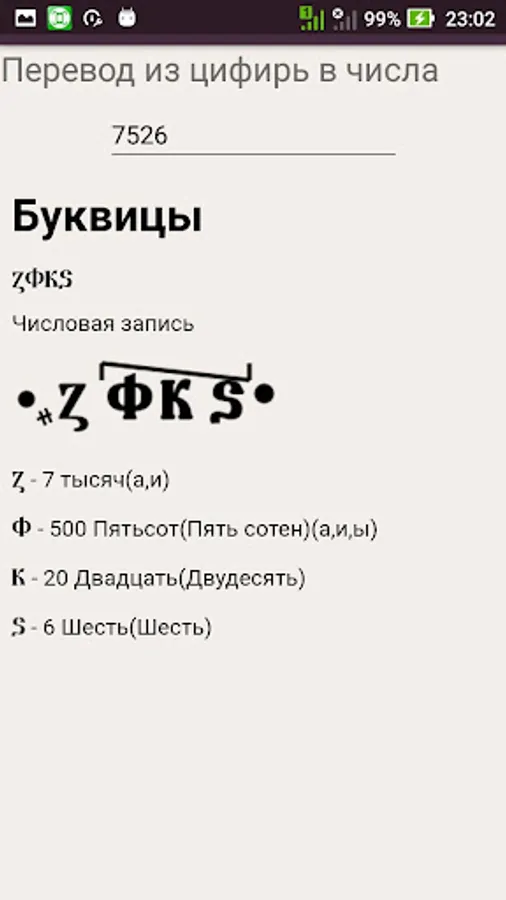 This program will quickly translate into numbers of Slavic digits (Arabic numerals) and back.