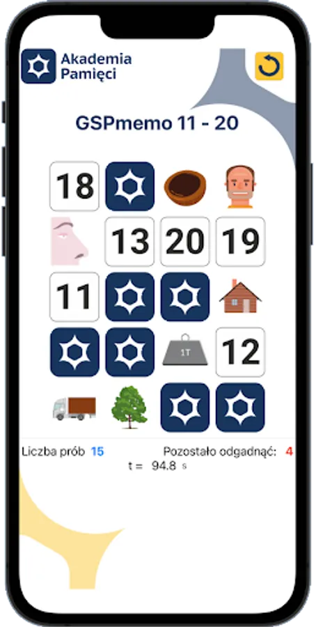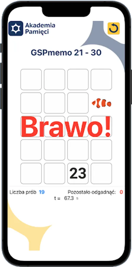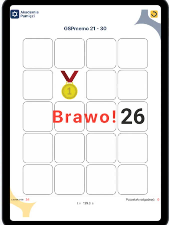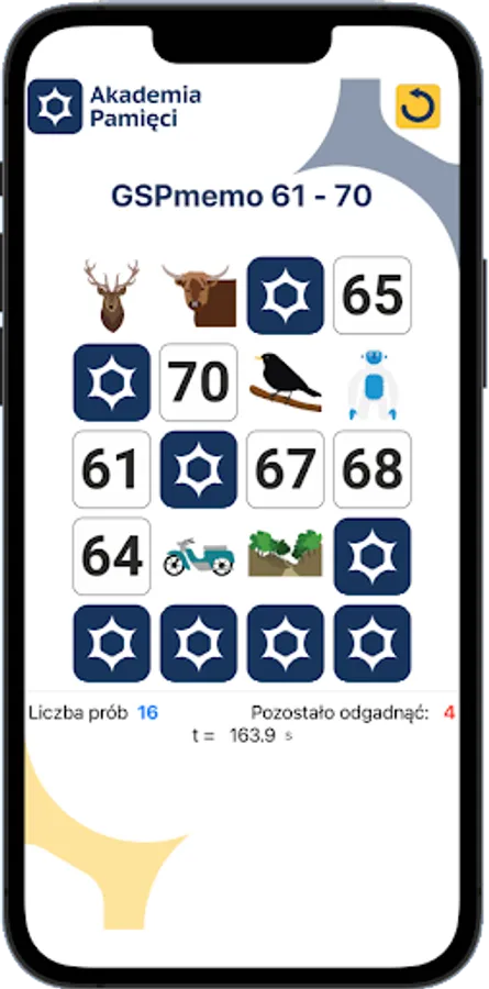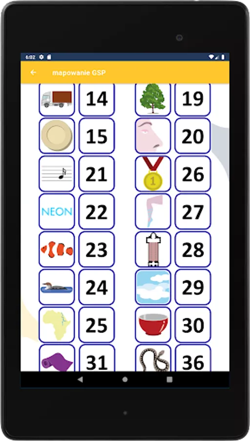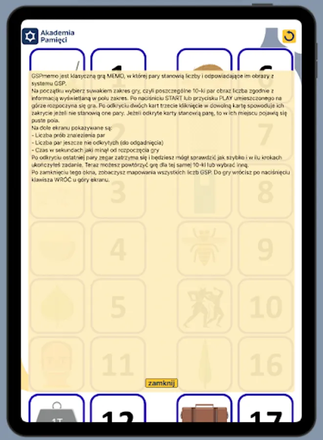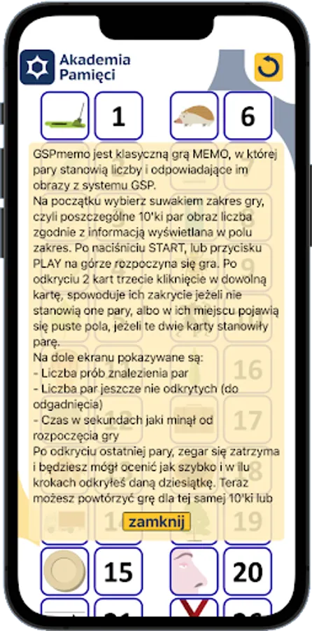 After such a round, you can start the same round again (the order of the numbers / pictures shown will be different), or go to guessing the other way (from numbers to pictures). You can also change the range and work with new number-image pairs. For beginners, the LEARNING button will be useful. The entire GSP mapping will then be displayed. By scrolling from top to bottom you can see (remember) how particular numbers map to images and vice versa.