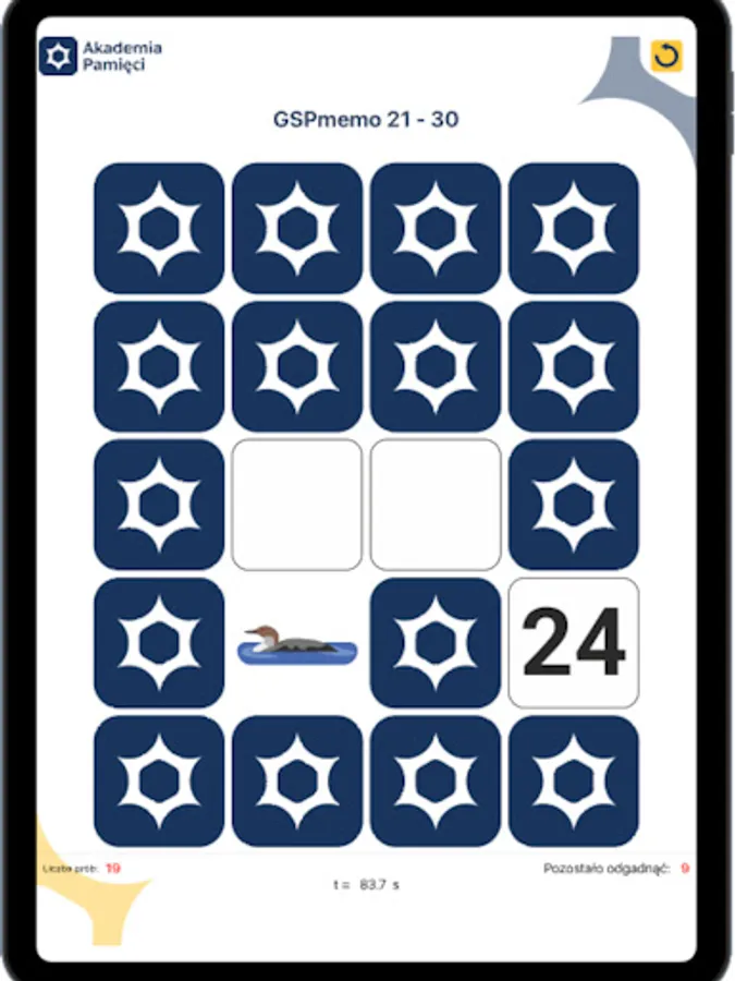 The training improves the known GSP tabs and develops spatial memory. You train with sets of 10 pictures and 10 corresponding numbers.