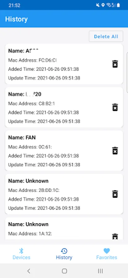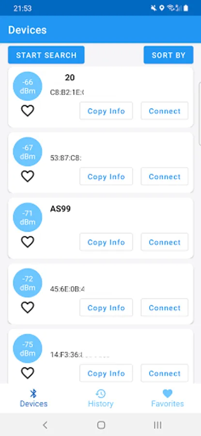 • Get the copy of MAC Address and raw data of the BLE devices.