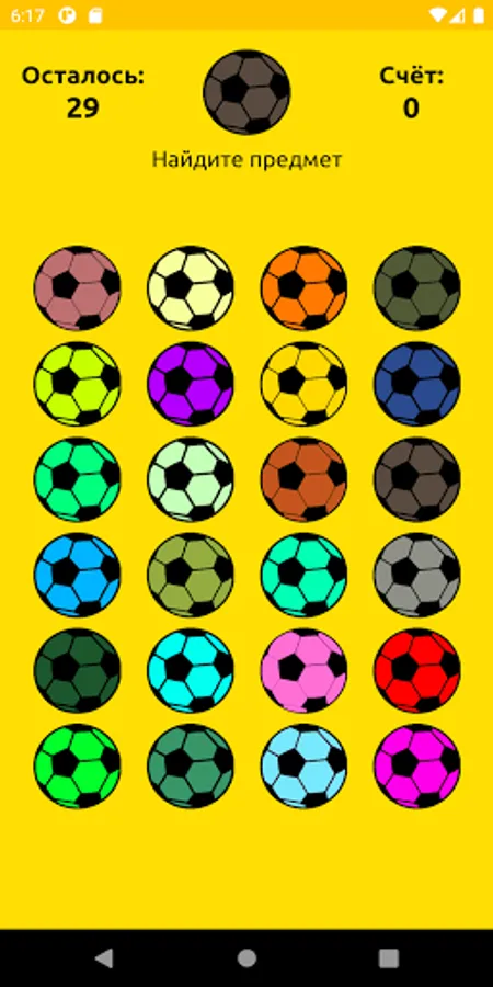 "Find a soccer ball" - among many images you need to find a soccer ball in the shortest possible time! Develop your reaction speed and set your own records!