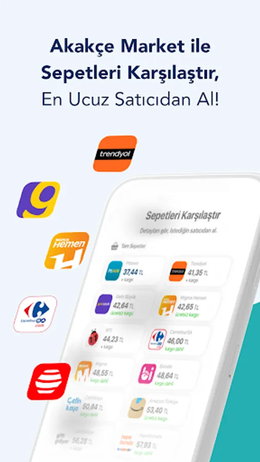 Add the products you need to the basket in the Akakçe Market application, and Akakçe will compare the baskets for you and determine the cheapest basket options for you. Complete your shopping with the basket you want!