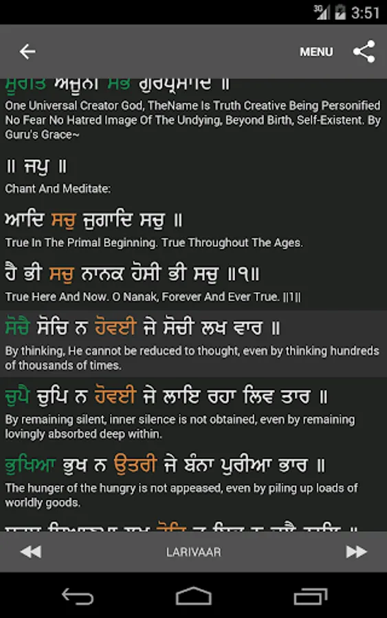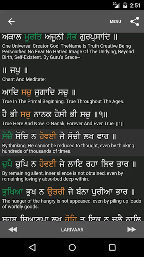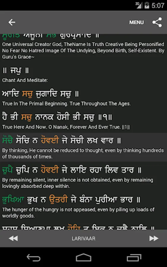 PLEASE NOTE: Since the Gurmukhi is from a new source and the database has been rebuilt from the ground up there are some errors that we could not catch during development. We are going to rely on the Sangat to help us identify and correct those errors.
