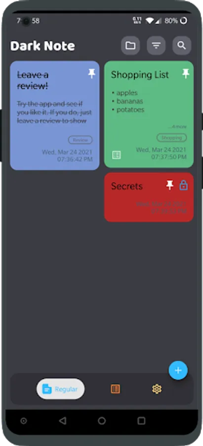 Dark note is ad-free so you can enjoy note taking without getting annoyed by bombardments of weird and dumb ads. If you want to support Dark Note, upgrade to the Pro version from the app settings.