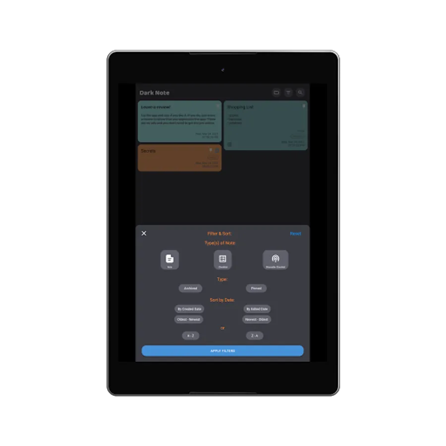 Dark note makes it easy to add notes, checklists, AND grocery/shareable checklists. Dark note's design is very easy on the eyes and easy to use.