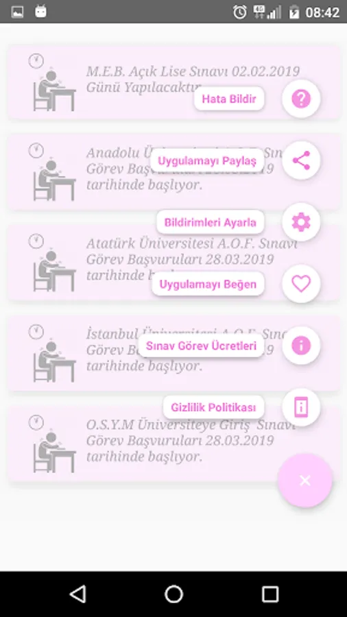 ** You can easily set up the exam tasks you want to receive notification in "Settings" section so you don't want to know the exam tasks you don't want.