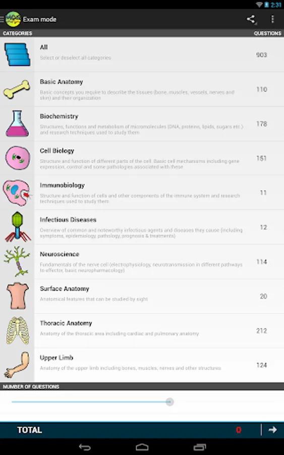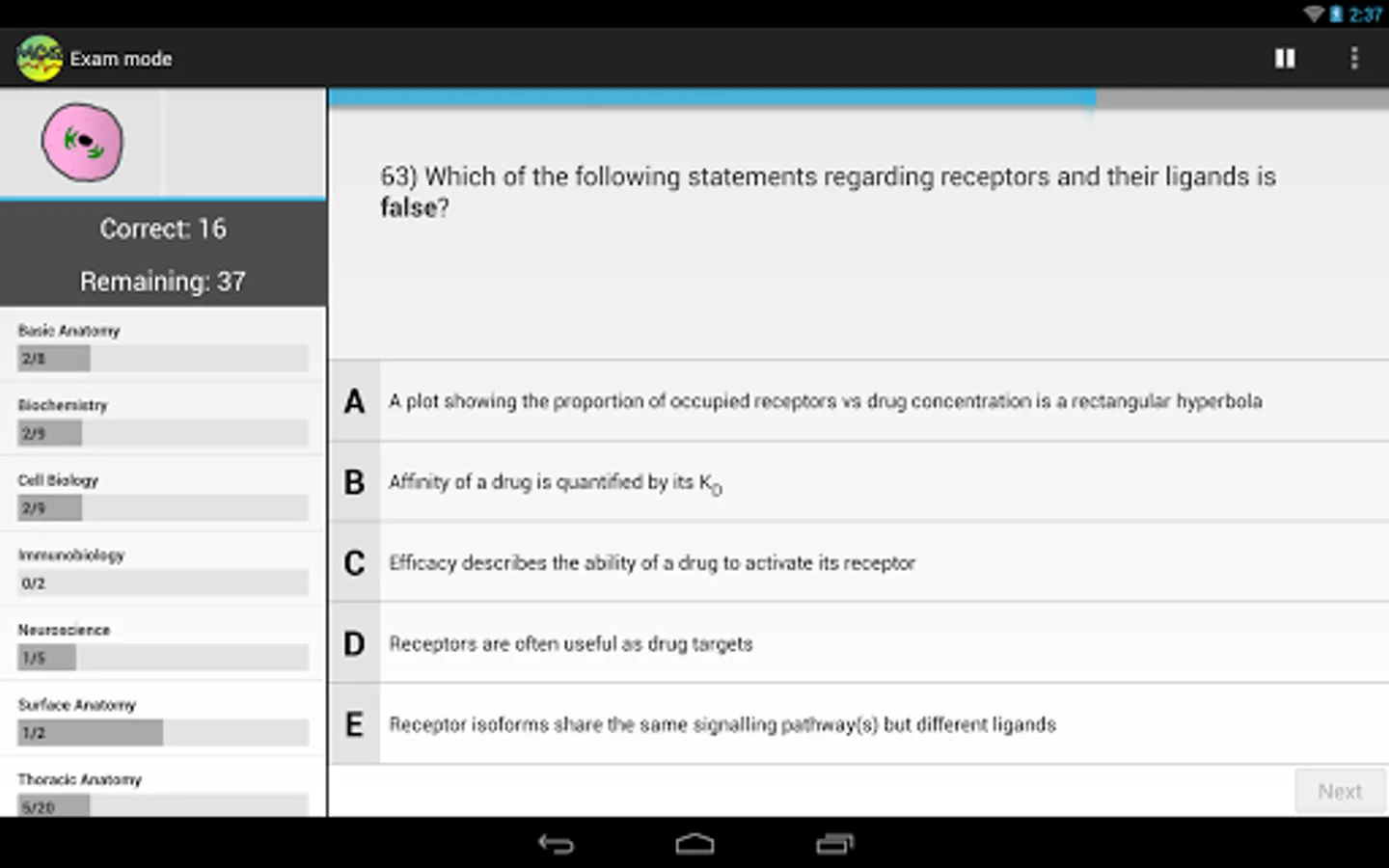 A bit about me: I am a medical student and I love helping my peers and teaching at schools and my fellow students in the years below. I created Medicine MCQs to deliver a high quality mobile exam aid for my friends and peers at medical school. The aim is to offer a way to speed learn all the preclinical and clinical topics in a fun way and can be used when in those spare moments like when travelling or waiting around in hospital. With practice it can get much easier to learn all the bones, muscles, drugs and other content. I spend a large portion of my time writing each question, checking the questions periodically and updating them accordingly and of course designing and coding the app. Despite this, if you find any errors or feel anything at all could be changed, please don't hesitate at all to contact me! And finally, work hard and I hope that will mean you all ace your exams whether they be SBAs, EMQs or OSCE stations and enjoy learning with Medicine MCQs :) Also you're awesome for reading until this far :)