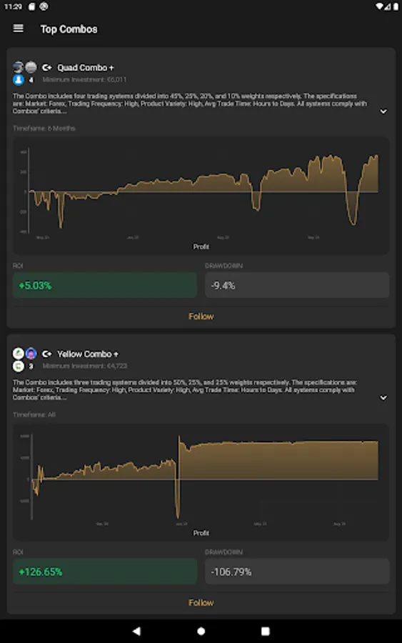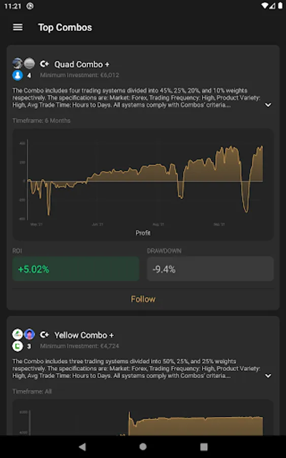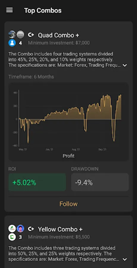 • Portfolio Simulator: Enables users to view their selected traders’ past performance customized to their own trading strategy