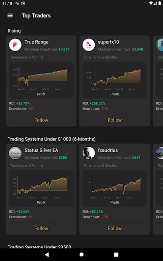 Curated Traders and strategies to follow and copy automatically from everywhere, without having to monitor the Financial Markets 24/7.