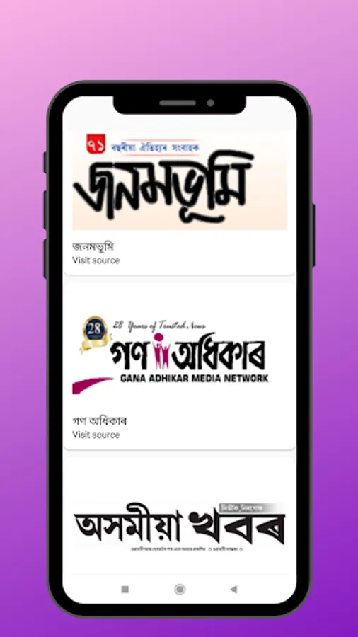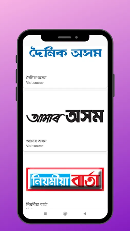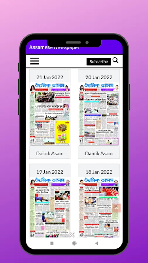 "Assamese News paper App" is a simple application to browse assamese newspaper, like Dainik Assames, Amar Assam, Niyomiya Barta, Dainik JanamBhumi, Gana Adhikar, Asomiya Khabar, Asomiya Protidin etc. In this app people easily find Assamese daily News e-Papers and Magazines, also find details of Assamese News Papers in this app.