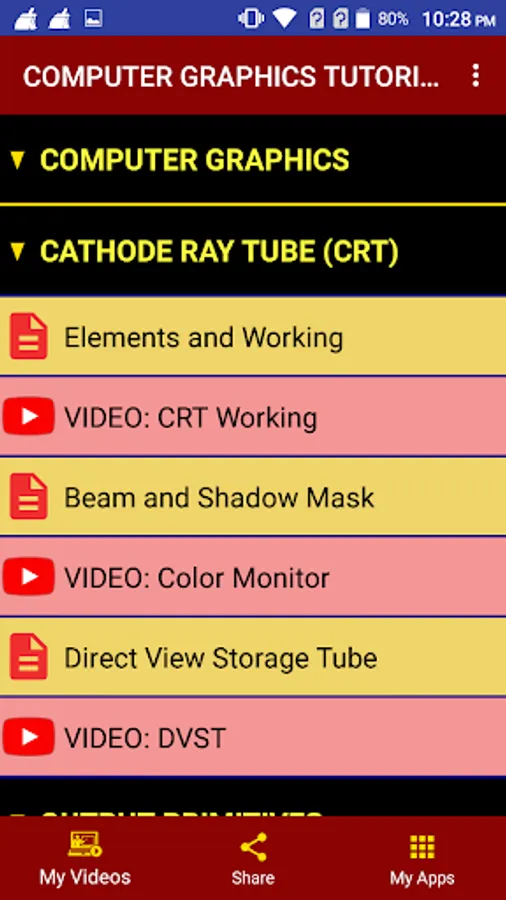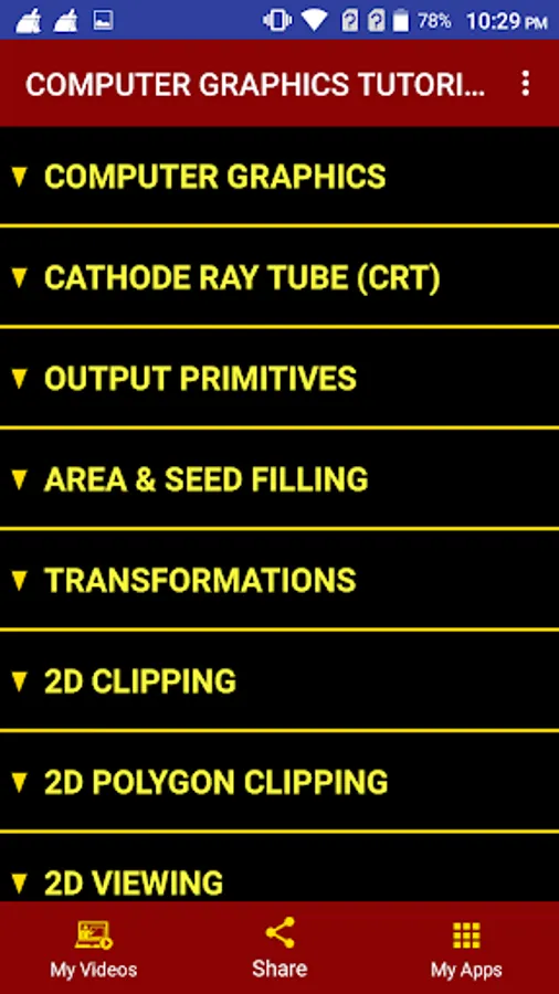 This tutorial app covers most of the major topics of computer graphics and multimedia subject. The contents of the tutorial are in PDF form. This tutorial describes all the given topics with clear diagrams. For the examination point of view, this app is very useful for all the students of computer science, information technology, and computer applications.