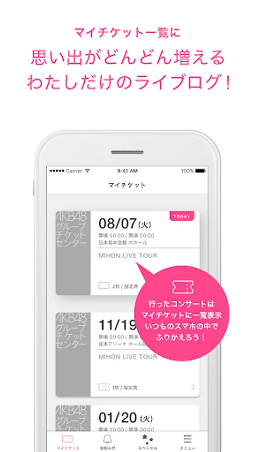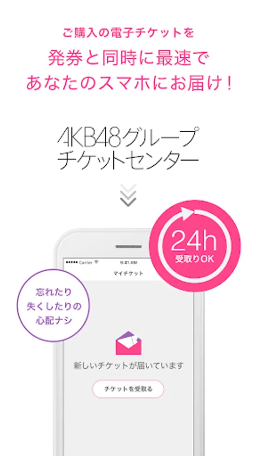 AKB48グループチケットセンターにてチケットをご購入の際、電子チケットでの受け取りを選択された場合は、本アプリをダウンロードしてください。