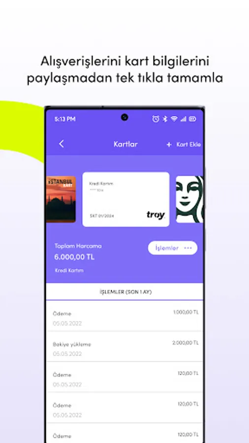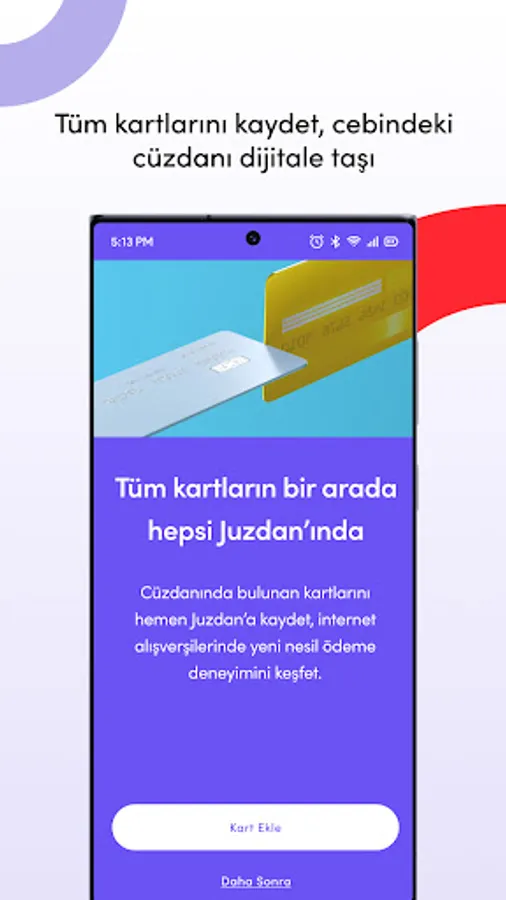 • You can register with Juzdan with your TR ID number and add all your credit and debit cards to your Juzdan to use it for internet shopping.
