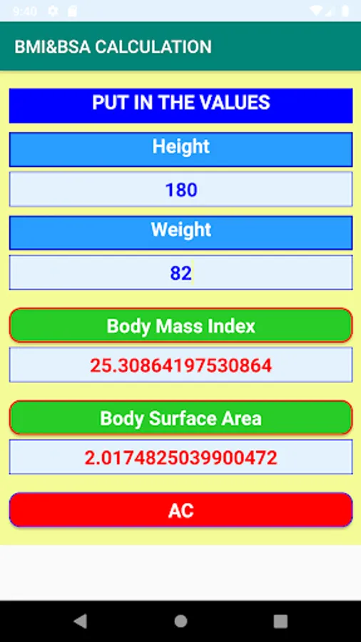 This application that is prepared especially for medical doctors and dieticians calculates Body Mass Index (BMI) and Body Surface Area (BSA).