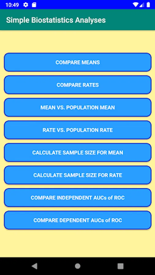 This application that is prepared especially for medical doctors makes simple biostatistics analyses to compare mean and rate of independent groups.
