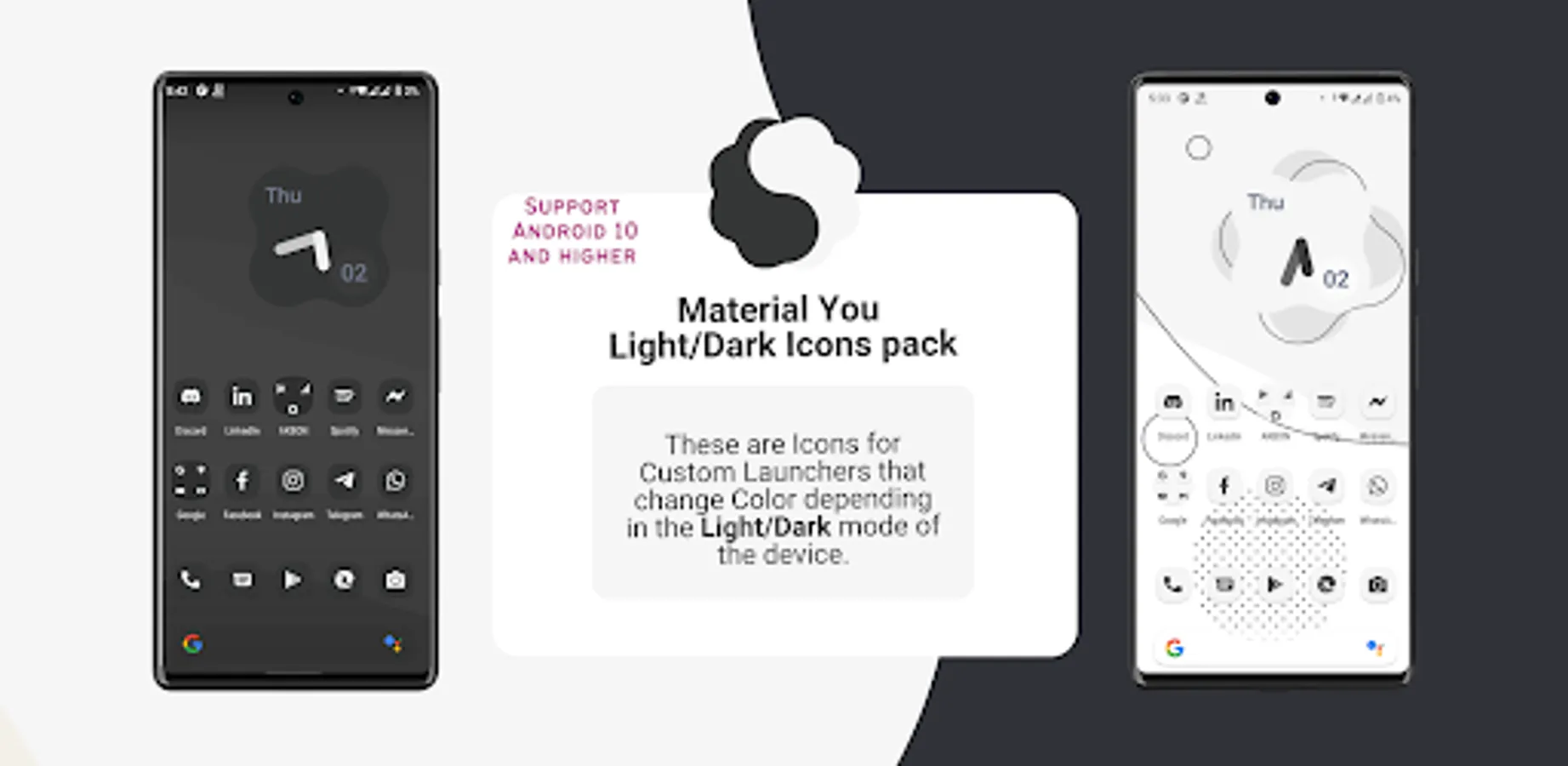 Material You Light/Dark Icons - These are icons for custom launchers that change in the Light/Dark mode of the device.