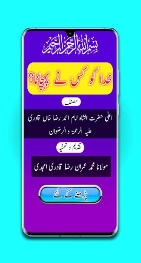 Ye kitab huzoor Ala Hazrat alaihirrahmatu w rizwan ki hai. us men marifate ilahiya ka jhoota daawa karne walon ka rad kiya gaya hai. aur is kitab ko aasan aur mazeed mustafad banane ki garz se maulana Imran Raza Amjadi ne in firqaha-e- batila ki tafseel muqaddama ke taur par zikr farmaya hai.jo kaafi kaar aamad hai. aur ab ye aap ki khidmat men ek Android Application ki shakl me hazir hai aap isse khud bhi istefada karen aur doosron ke saath share bhi karen. Allah ise qubool farmae.