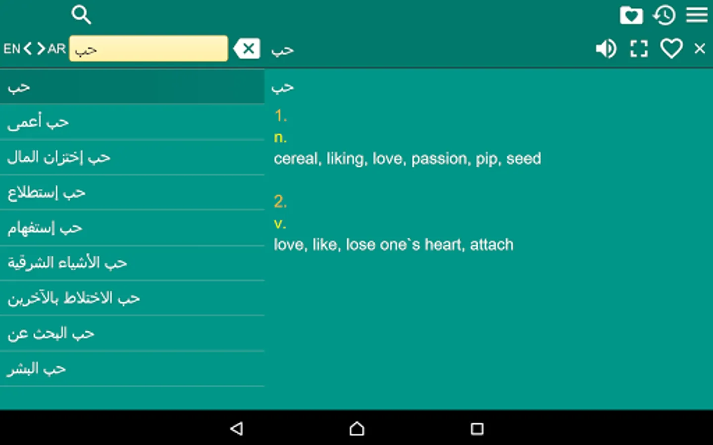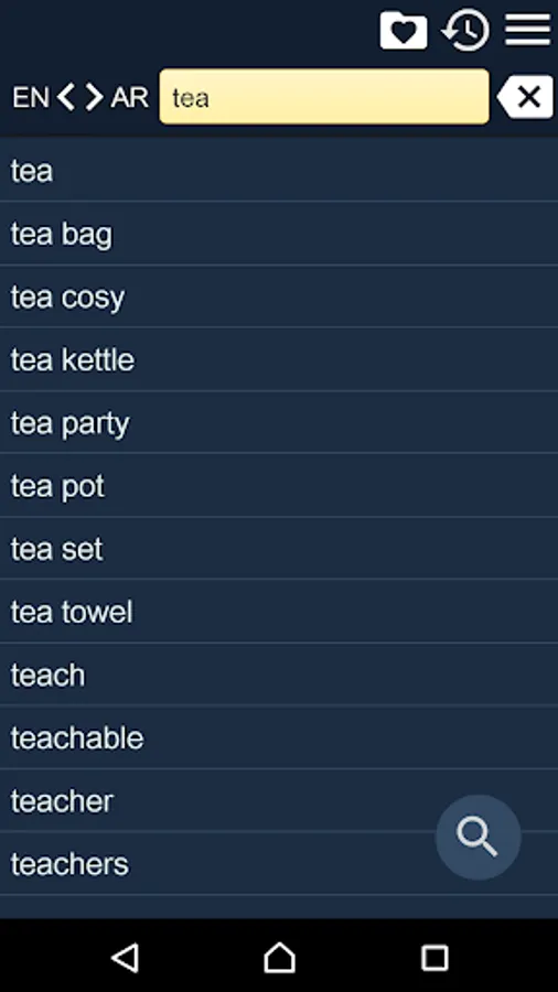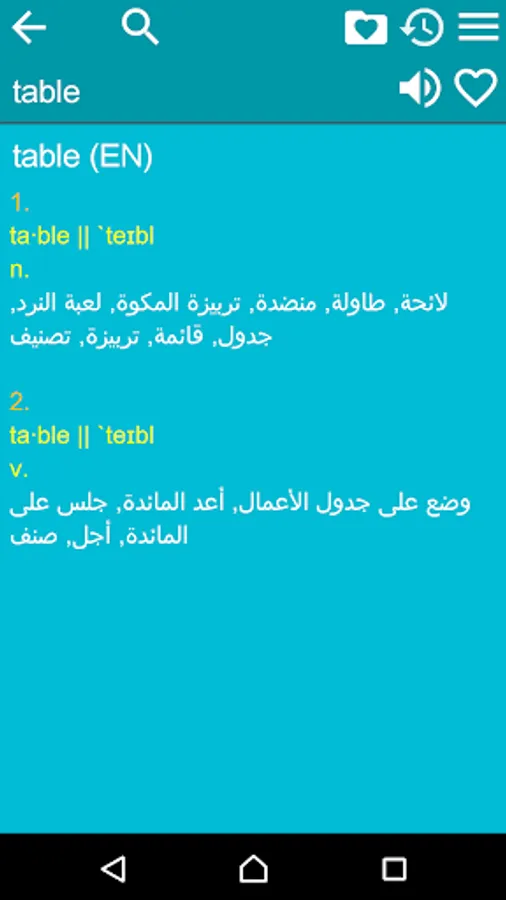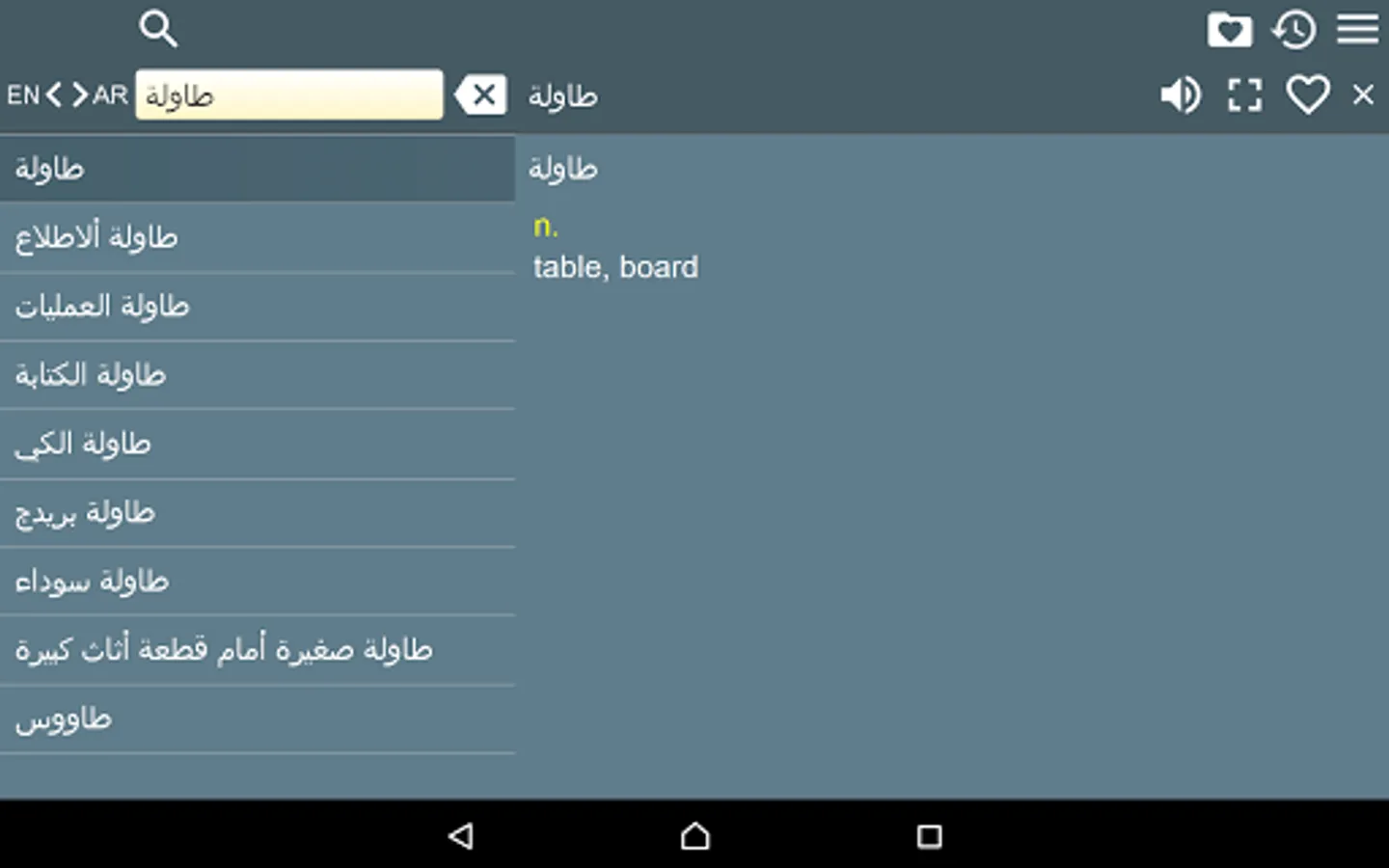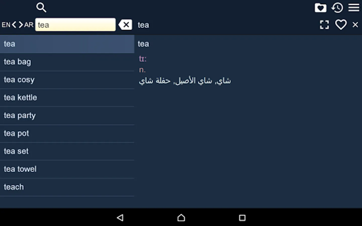 2. Favorites – you are able to add words to favorites list by clicking the “star” icon.