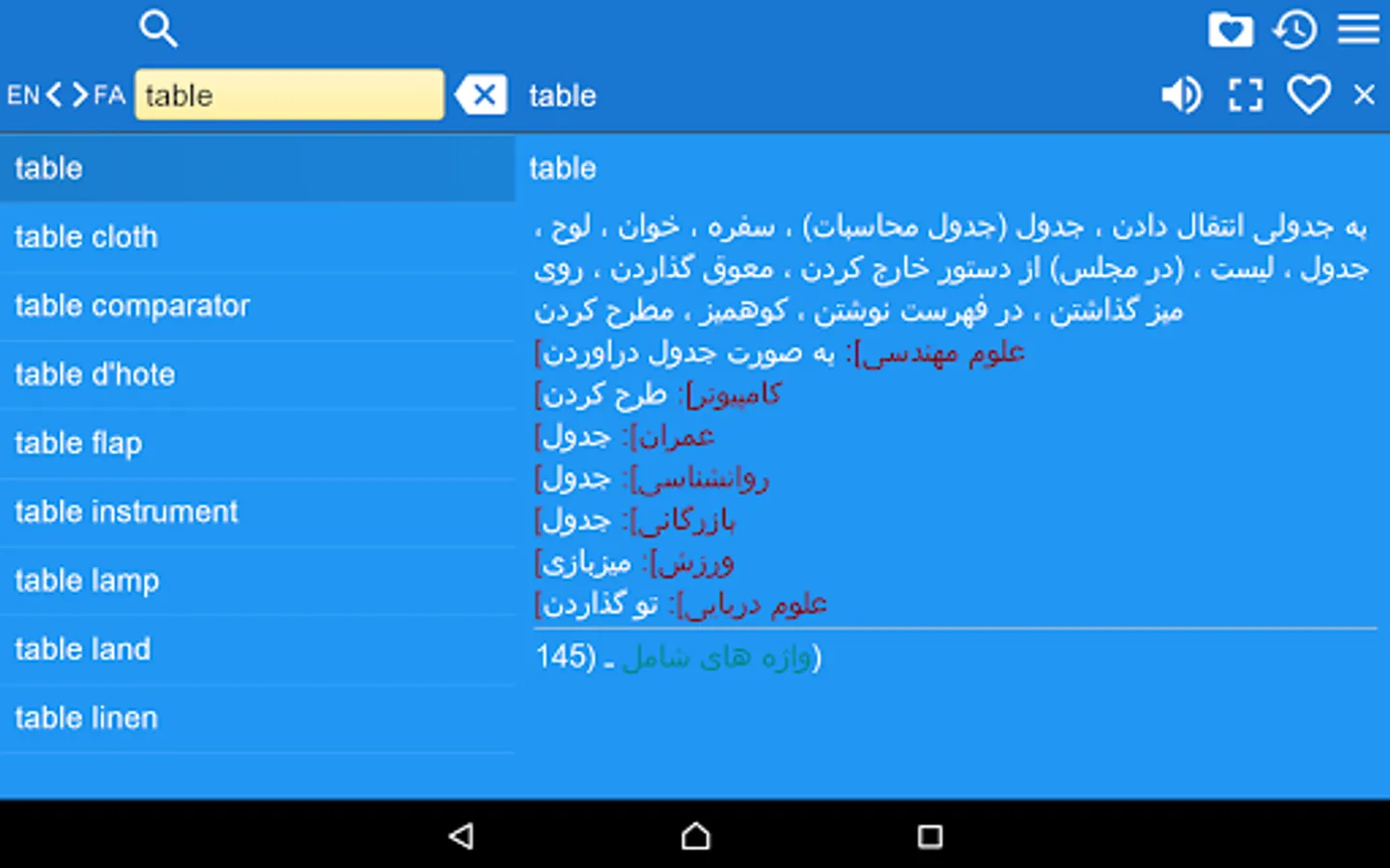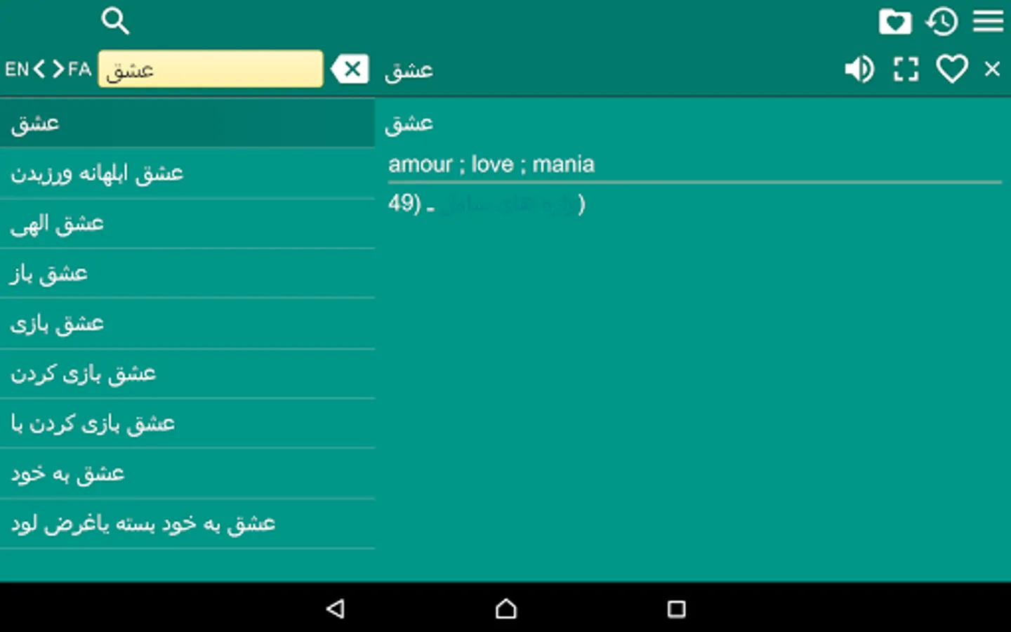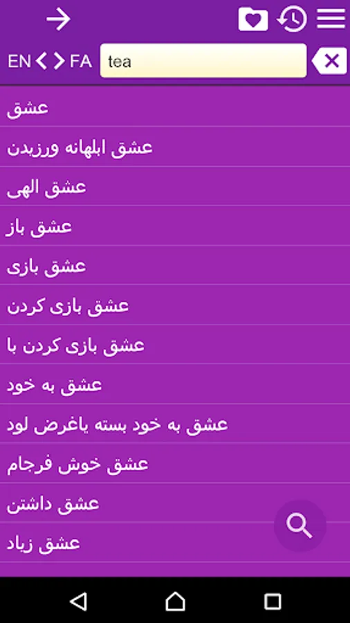 This is English - Persian (Farsi) and Persian (Farsi) - English Dictionary (فرهنگ لغت فارسی به انگلیسی و انگلیسی به فارسی), containing 248000 translation articles. The Dictionary is OFFLINE and does not need the internet connection.
