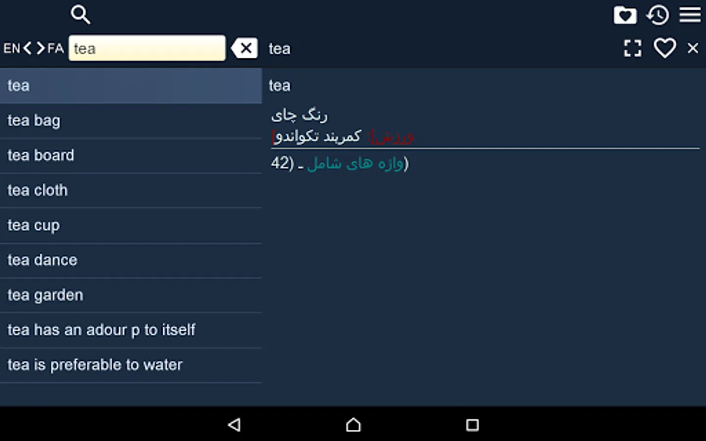 2. Favorites – you are able to add words to favorites list by clicking the “star” icon.
