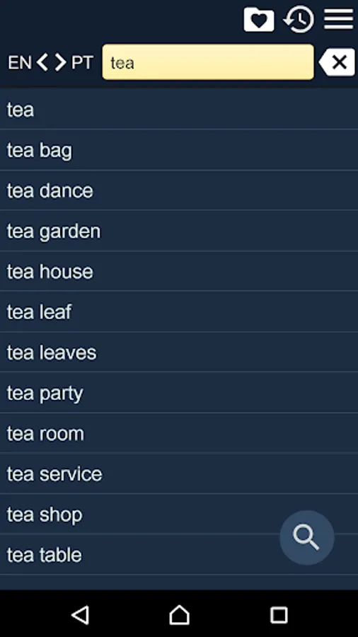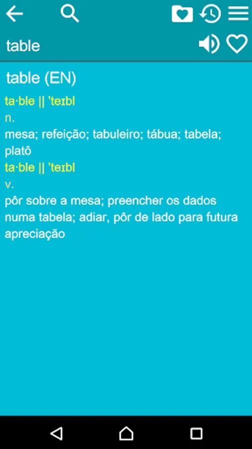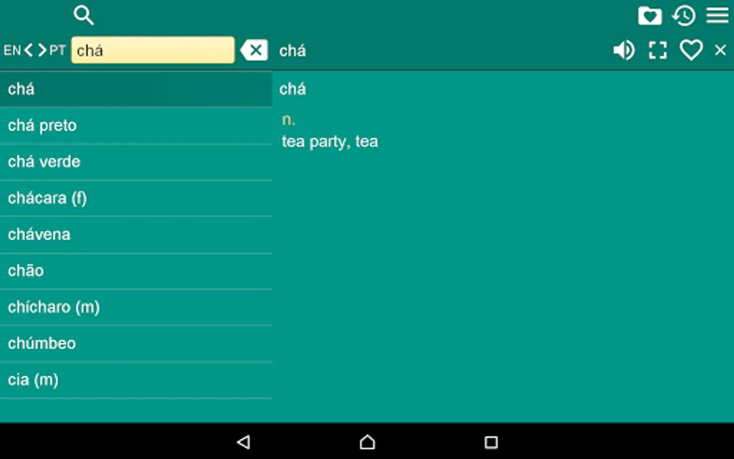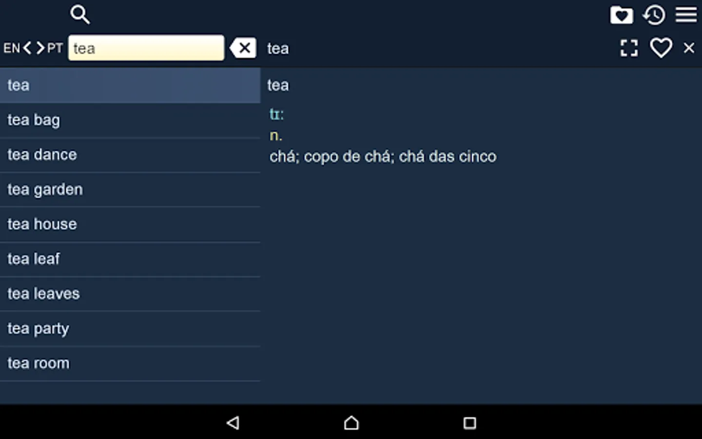 2. Favorites – you are able to add words to favorites list by clicking the “star” icon.